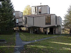 Another interesting grouping, but this time with more identical units than the Sutton project. This 1984 project however is one of the highest, with the living modules well up into the braches of several large maple trees, providing exquisite views of the mountains all around.